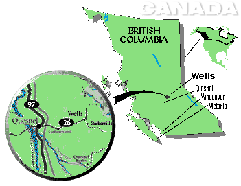 east of Wells. The world famous Bowron Lake Provincial Park is approximately |